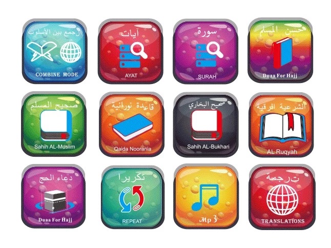 Le lecteur Coran avec lampe à LED est un produit spécial pour les musulmans, avec double fonction (éclairage et apprentissage); Lecture mot par mot des verset coraniques - Traductions - Tafsir audio du Coran - etc.