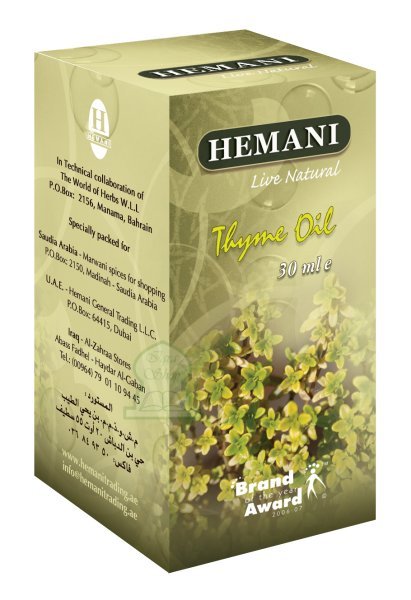 Huile de thym (30 ml). Appréciée par les personnes âgées pour ses propriétés apaisantes pour les articulations, l'huile essentielle de thym est également très efficace contre les problèmes pulmonaires, cystite, infection urinaire...