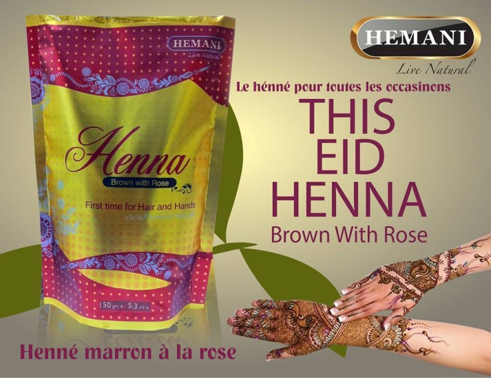 Hennés de la marque Hemani utilisables aussi bien pour la teinte des cheveux que pour les tatouages sur les mains et les pieds.