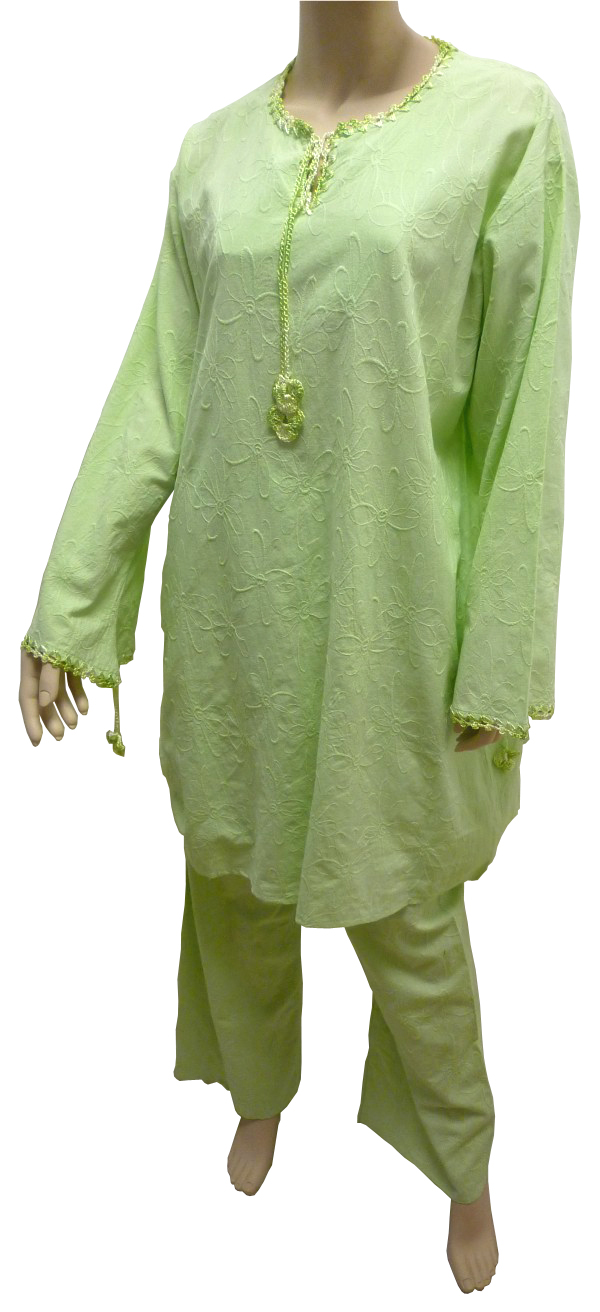 Ensemble "Ikram" vert clair (tunique et pantalon) - REF. 12537 (35.00 €) - En Promotion à 19.50 €