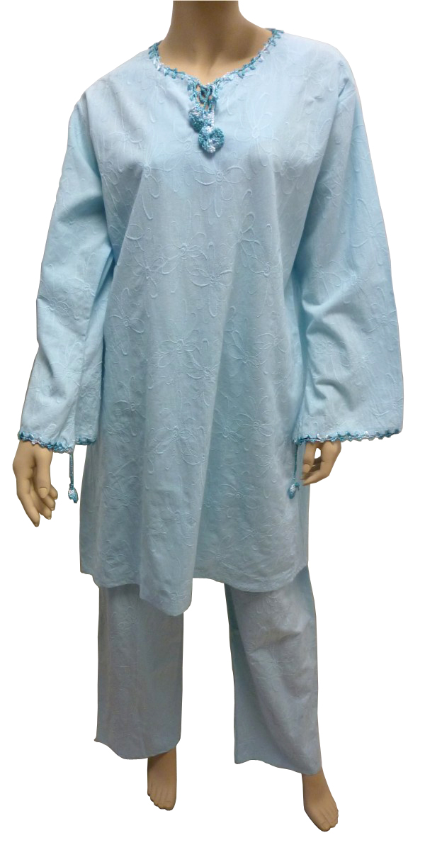 Ensemble "Ikram" bleu ciel (tunique et pantalon) - REF. 12540 (35.00 €) - En Promotion à 19.50 €