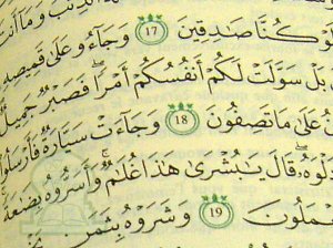 C’est la parole incréée de Dieu (Allah) adressée à l'intention de toute l'Humanité : l'islam, contrairement au christianisme, a une vocation universelle. Le Coran est divisé en cent quatorze chapitres appelés sourates, classées plus ou moins par ordre décroissant en fonction de leur longueur à l'exception de la première sourate appelée Al Fatiha (parfois traduite par « le prologue » ou encore « l'ouverture »). Ces sourates sont elles-mêmes composées de versets nommés âyât (pluriel de l'arabe âyah, « preuve », « signe »). Les versets sont au nombre canonique de 6219.