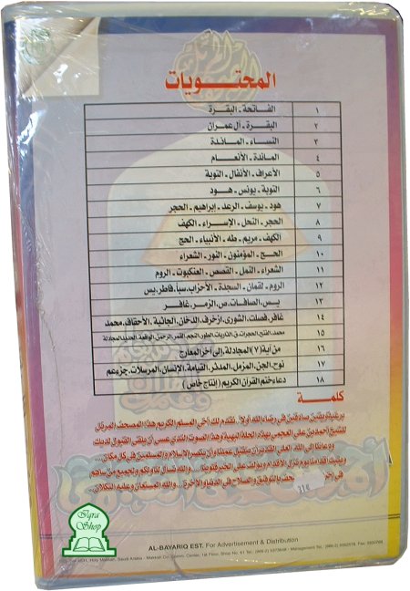 Récité par le Cheikh Ahmed Al 'Adjmi. Coffret d'une vingtaine de cassettes.