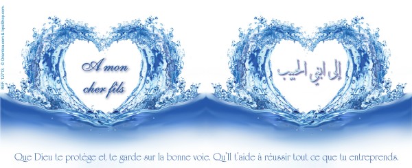 Mug "Pour mon cher fils" (en français/arabe). Que Dieu te protège et te garde sur la bonne voie. Qu’Il t’aide à réussir tout ce que tu entreprends.