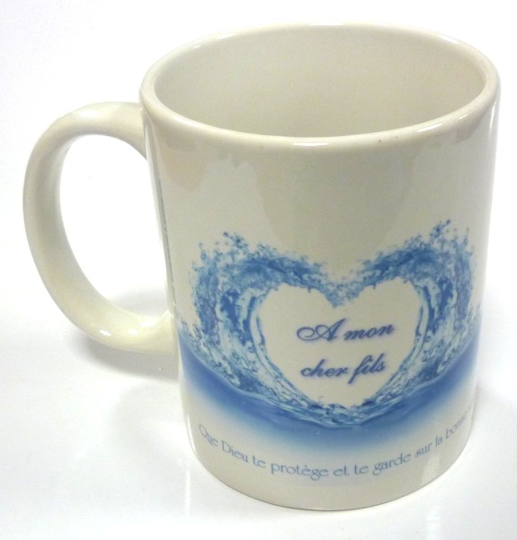 Mug "Pour mon cher fils" (coeur sur fond bleu) إلى ابني الحبيب - REF. 12713 (5.90 €)