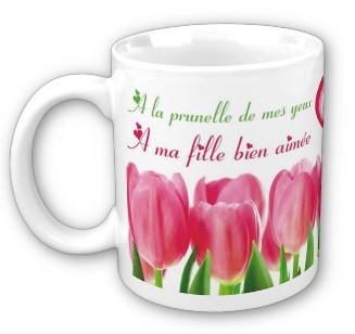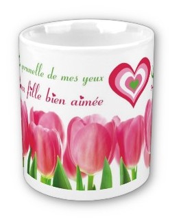 Mug "A la prunelle de mes yeux. A ma fille bien aimée" - إلى قرة عيني - إلى إبنتي الحبيبة
