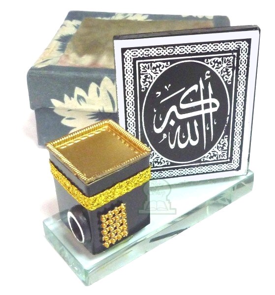 Garniture Kaaba et inscriptions islamiques en verre avec sa boite cadeau Deco & Cadeau