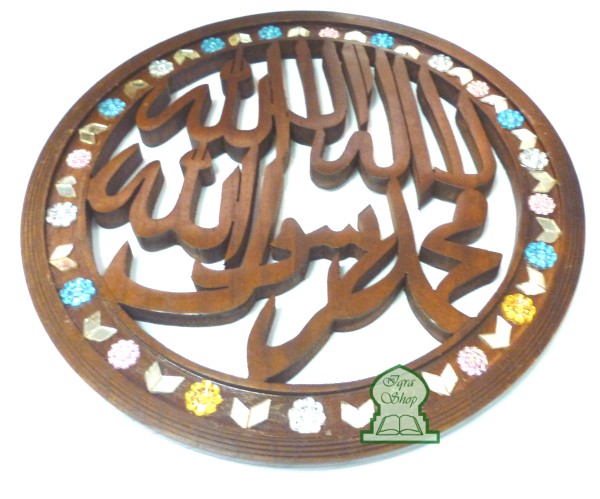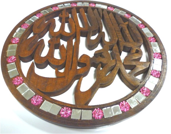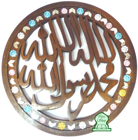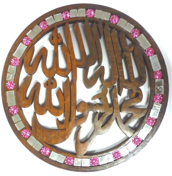 Tableau rond en bois "La chahada" (lâ ilâha illallâh muhamad rassulullah) Il n'y a de divinité hormis Allah et Muhammad est le messager d'Allah.