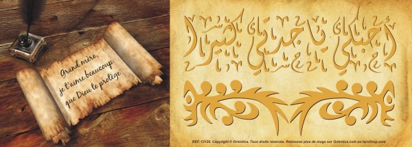 Mug Tasse décorative : Papyrus calligraphie arabe Bismillâhi-Rahamâni-Rahîmi - REF. 18084 (5.90 €) |