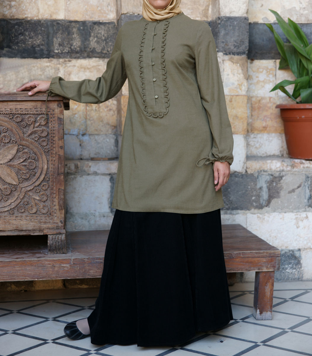 Cardigan à lacet (Veste-Gilet style kimono - Boutique Modest Fashion Paris) - Couleur kaki - REF. 35836 (19.90 €)