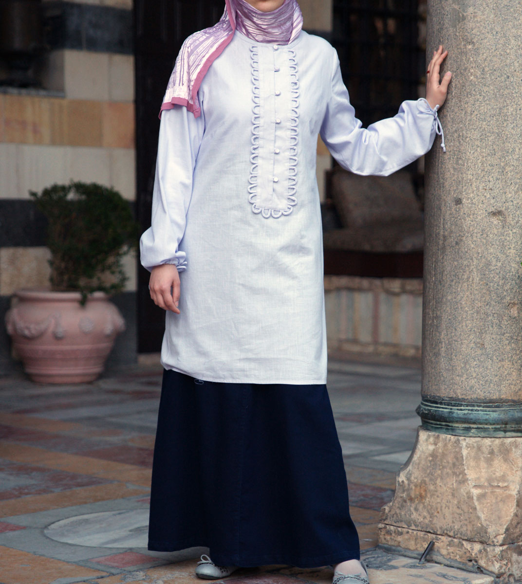 Tunique longue boutonnée à carreaux avec capuche (Vetement Turque pour femme voilée - Mode islamique) - REF. 38636 (25.00 €)