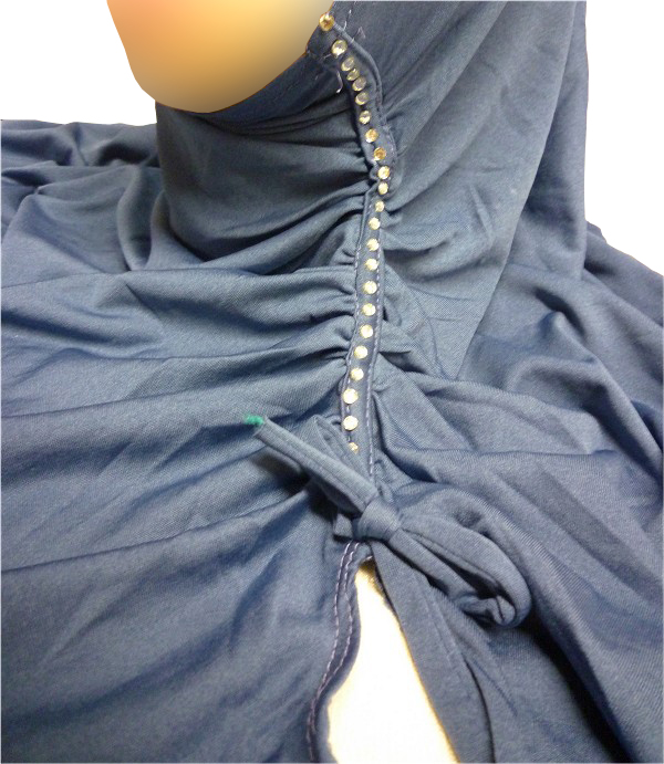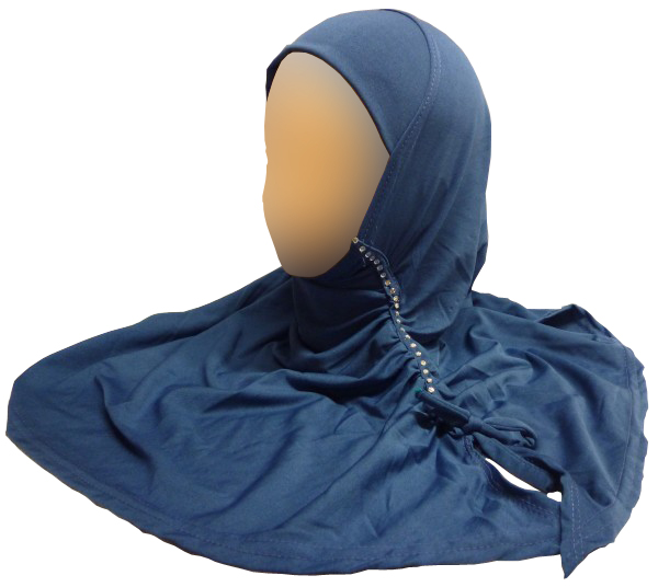 Hidjab avec strass froncé et petit noeud sur le côté. 1 pièce. Matière fluide 100% polyester. plusieurs couleurs