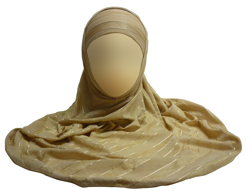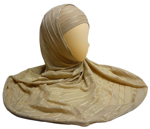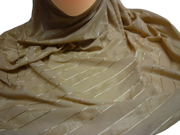 Hidjab beige avec motifs bandes dorés - 2 pièces - matière legère au toucher 100% polyester.