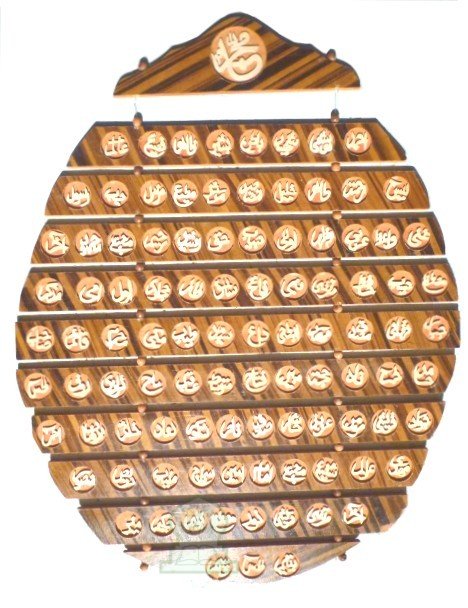 Tableau suspendu ovale en bois Les surnoms du Prophète Mohammed (SAW).