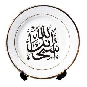 Assiette en porcelaine avec calligraphie artistique de l'invocation "Subhânak-Allah" réalisée par un calligraphe professionnel. Cette assiette se mariera bien avec tous types de mobilier.
