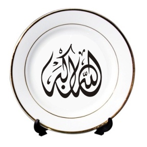 Assiette en porcelaine avec bordure doree et calligraphie - Allah est Tres Grand - "Allahu Akbar" -