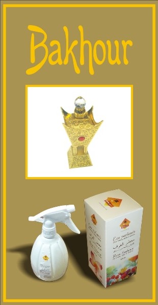 Eau parfumée désodorisante Musc d'Or "Bakhur" - Pour literies, salons, rideaux, vêtements, sièges de voitures, etc. Fini les mauvaises odeurs. Bien agiter avant utilisation.