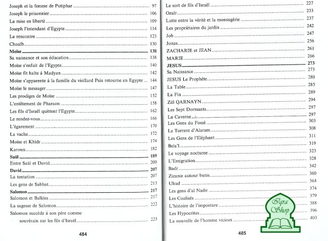 On trouve dans ce livre toutes les histoires du Coran : Les prophètes, les batailles du prophètes Mohammad (SBDL),ses compagnons,ses femmes etc...