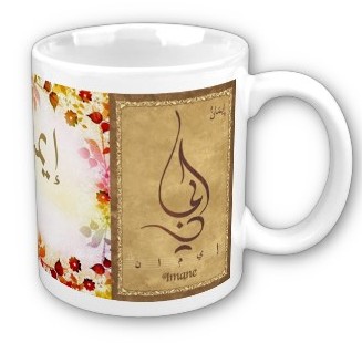 Voir l'ensemble des mugs dédiés au prénoms calligraphiés en arabe (Mugs prénoms arabes musulmans masculins - Mugs prénoms français)