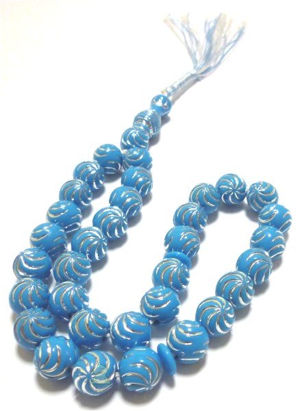 Chapelet "Sebha" bleu ultra-resistant (33 gros grains avec decorations argentees)