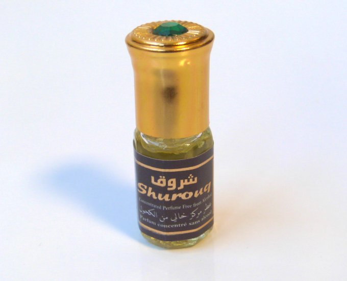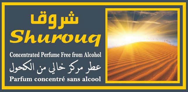 Parfum concentré (3 ml) sans alcool Musc d'Or "Shurouq" pour hommes. En arabe Shurouq (شروق) signifie levée du soleil.