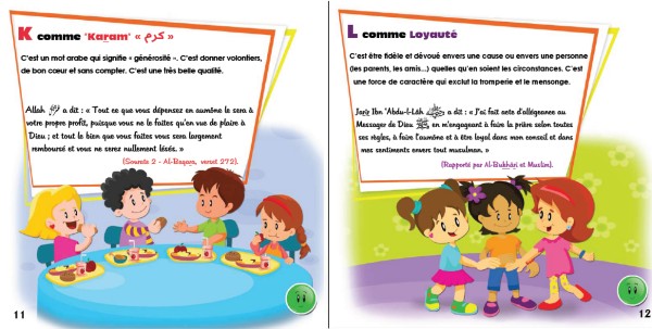 L'abécédaire du comportement du musulman à destination des enfants, ce sont 26 lettres, 26 mots (Yaqin, Quiétude, Tolérance, Confiance, Modestie, négligence, politesse, obéissance, respect, silence, utile, vanité, Wafa, Xénophobie, Zélé, Ambition) et 26 clés pour étayer, au quotidien, les actes et les paroles qui te permettront de te rapprocher d'Allah.