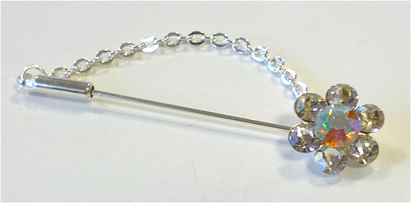 Épingle argentée pour Hijab sous forme de fleur avec diamants.