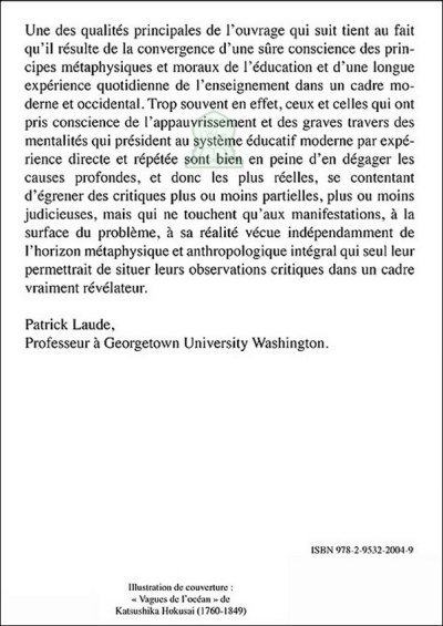 Fort de cette expérience pédagogique, il publia une étude critique de l'enseignement moderne sous le titre L'école à la dérive ' l'enseignement actuel à la lumière de la Tradition Universelle.