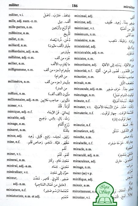 Dans ce dictionnaire 15 000 mots en français avec leur équivalent en arabe. On y retrouve les expressions et sens très utilisés.