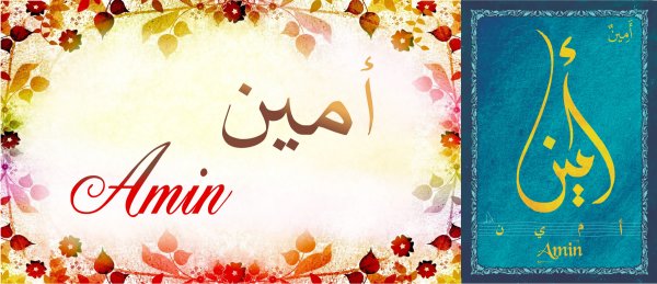 Signification (sens) du prénom ’Amîn (Amin, Amine) أَمِين: Honnête, Al-’Amîn, étant le surnom du Prophète Muhammad avant l’islam. ’Amîn Qâsim, égyptien connu pour son soutien à la liberté de la femme. ’Ahmad ’Amîn, grand écrivain égyptien.