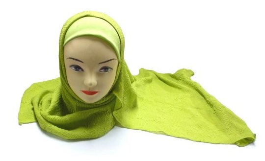 Très beau Hijab une pièce, vert olive, avec de beaux motifs en fleur tissés....