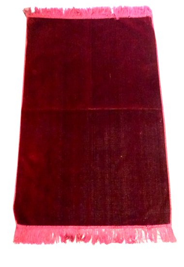 Le tapis en velours est uni (sans motifs), constitué de deux coloris afin de choisir un côté pour les pieds (sombre) et un autre côté pour la tête (clair). De très jolies couleurs. Les tapis sont tous différents et uniques (grande variété de coloris).