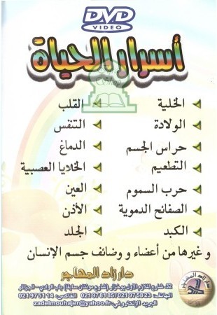 DVD "Les secrets de la vie", plus de 20 épisodes de dessins animés éducatifs pour enfant en langue arabe littéraire et sans musique. Part dans l'exploration du corps humain, en commençant par l'unité constitutrice et fonctionnelle qu'est la cellule, en passant par les organes les plus vitaux, à l'exemple du coeur, de l'oeil, du foie, et en aboutissant aux fonctions organiques telle l'immunité, la respiration...