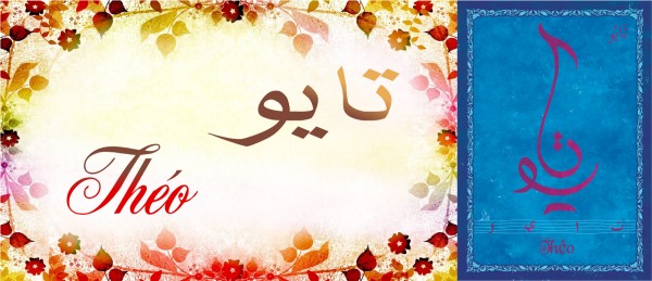 Signification (sens) du prénom Théo تَايُو: Dérivé de Théodore qui a pour origine le prénom grec Théodôros qui veut dire "don de Dieu".