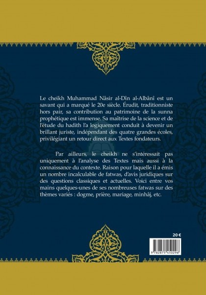 Par ailleurs, le cheikh ne s'intéressait pas uniquement à l'analyse des Textes mais aussi à la connaissance du contexte. Raison pour laquelle il a émis un nombre incalculable de fatwas, d'avis juridiques sur des questions classiques et actuelles. Voici entre vos mains quelques-unes de ses nombreuses fatwas sur des thèmes variés : dogme prière, mariage, minhâj, etc.