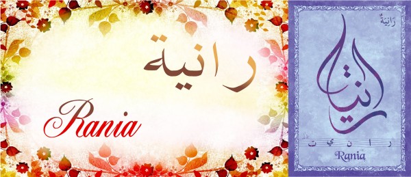 Signification (sens) du prénom Ranya (Ranya, Rania) رَانْيَة: Celle qui contemple et apprécie. Ranya, épouse du roi ‘Abdullâh II de Jordanie (1990).