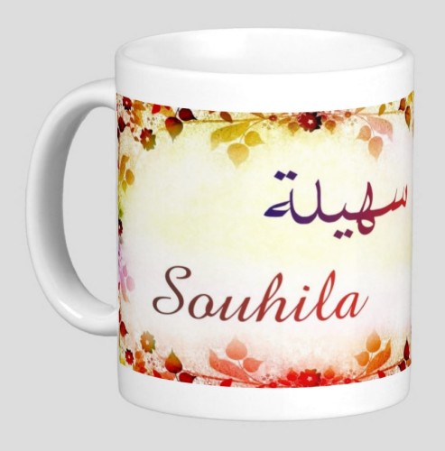 Mug avec le prénom Souhila calligraphié en arabe (سهيلة).