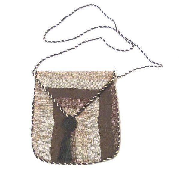 Sacoche artisanale en tissu mabra marron avec de jolis motifs brodés - REF. 18073 (12.00 €)