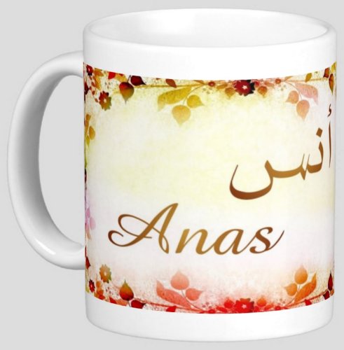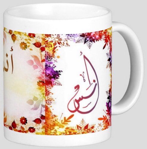 Mug avec le prénom "Anas" calligraphié en arabe (أنس).