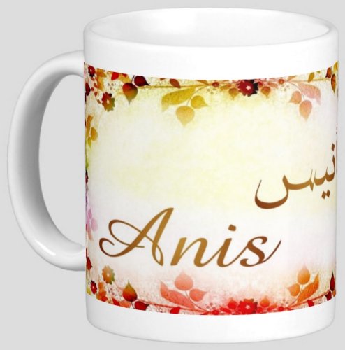 Mug avec le prénom "Anis" calligraphié en arabe (أنيس).