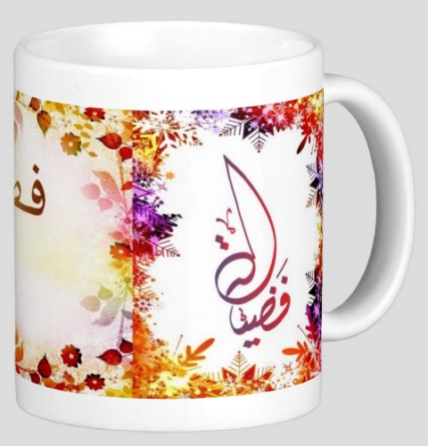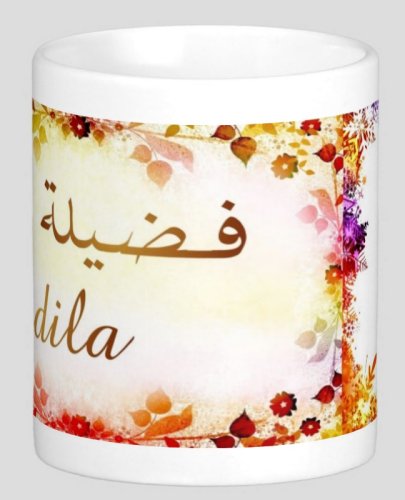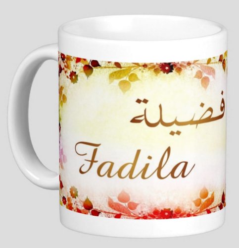 Mug avec le prénom "Fadila" calligraphié en arabe (فضيلة).