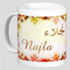 Mug avec le prénom "Labiba" écrit en français, en arabe (لبيبة) et calligraphié de façon artistique en arabe sur la partie droite.