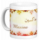 Mug avec le prénom "Lemia" écrit en français, en arabe (لمياء) et calligraphié de façon artistique en arabe sur la partie droite.
