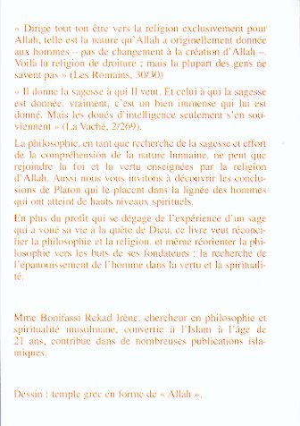 La philosophie" en tant que recherche de la sagesse et effort de la compréhensif()n de la nature humaine, ne peut que rejoindre la foi et la vertu enseignées par la religion d ‘Allah. Aussi nous vous invitons à découvrir les conclusions de Platon qui le placent dans la lignée des hommes qui ont atteint de hauts niveaux spirituel.