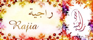 Signification (sens) du prénom Rajiya (Rajia) رَجِيَة: Optimiste, qui espère et qui prend les choses du bon côté.