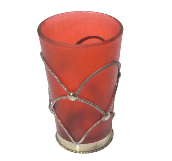 Verre sablé rouge garni de métal argenté finement ciselé - REF. 16422 (4.50 €)