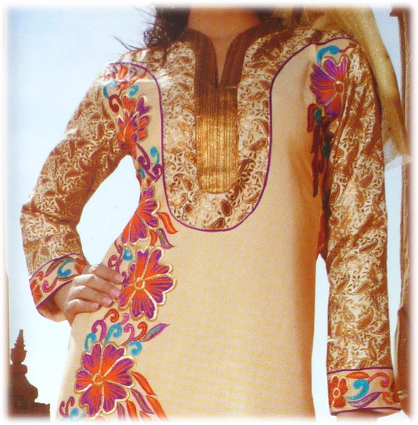 Robe longue fluide avec broderies blanches et dorées pour femme - Couleur crème - REF. 29667 (29.90 €)