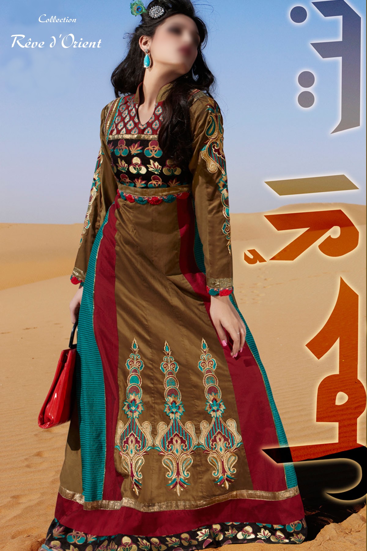 Les robes orientales de la collection Rêve d'Orient sont confectionnées avec le plus grand soin par des couturiers spécialisés des ateliers Sara en Inde. 100% tissus de qualité.