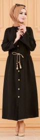 Robe casual avec ceinture intégrée pour femme (Boutique en ligne Mode Modeste & Hijab France) - Couleur noir - REF. 36426 (35.00 €)