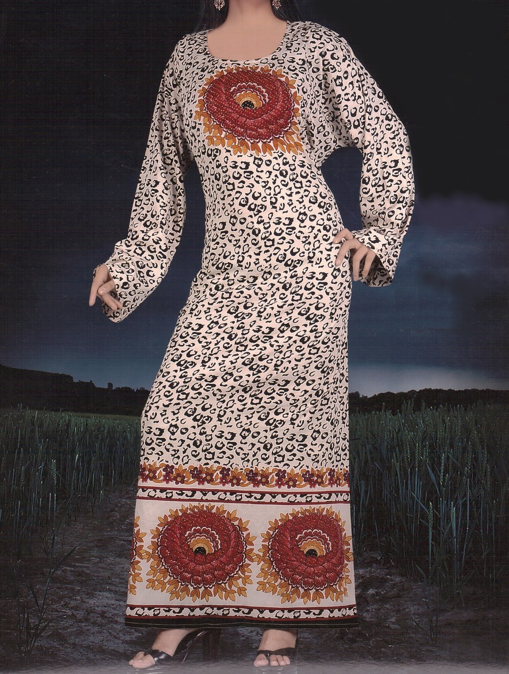 Halima Fashion Dubai : Robe orientale zébrée avec des motifs fleurs manches longues - REF. 20208 (22.00 €)